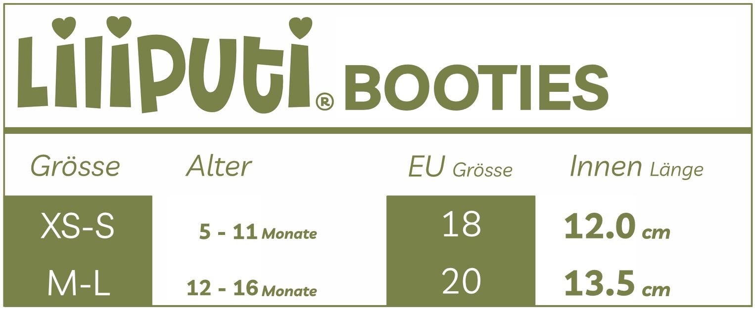 Der verstellbare Kordelzug am Knöchel ermöglicht einen perfekten Sitz, trotzdem lassen sich die Liliputi Booties leicht an- und ausziehen. Ideal für Babys die noch nicht laufen können.